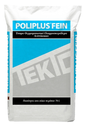 Το POLIPLUS FEIN λόγω της υψηλής θερμικής αγωγιμότητας του λ=0,087 W/mk και της εξαιρετικής διαπνοής του μ=12, προορίζεται ως εννιαία χυτή θερμομονωτική στρώση, μεταβλητού πάχους, εξασφαλίζοντας τον απαιτούμενο συντελεστή θερμικής αντίστασης "R" και θερμοπερατότητας "U".