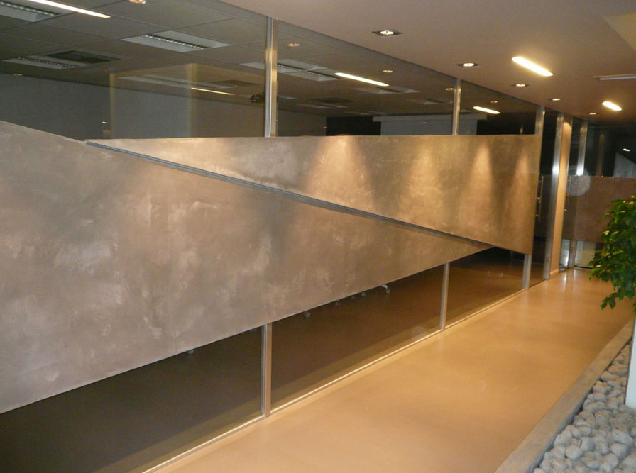 Οι εκθεσιακοί χώροι είτε πρόκειται για καταστήματα με ρούχα ή έπιπλα είτε για γκαλερί έργων τέχνης, χαρακτηρίζονται από την ανάγκη προβολής των εκθεμάτων με τον πιο αποτελεσματικό και ?ελκυστικό? τρόπο. Για το λόγο αυτό τα υλικά επικαλύψεων πρέπει να είναι σχεδιασμένα έτσι ώστε να μην προκαλούν το βλέμμα του επισκέπτη το οποίο θα πρέπει να κατευθύνεται στα εκθέματα και να μην αποπροσανατολίζεται από πολλούς αρμούς, σχήματα και χρώματα. Αυτό στα δάπεδα επιτυγχάνεται εύκολα με τις τσιμεντοκονίες PLANOCOLOR PREMIUM και PLANOCOLOR W όπου μπορούμε και δημιουργούμε ενιαίες επιφάνειες χωρίς αρμούς κάθε 7Χ7τε τραγωνικά μέτρα, κάτι που συμβατικές επικαλύψεις όπως κεραμικά πλακίδια δεν μπορούν να επιτύχουν. Το έγχρωμο κονίαμα PLANOCOLOR VENETICO δημιουργεί μια λεία και απέριττη επιφάνεια χωρίς αρμούς σε εσωτερικούς και εξωτερικούς χώρους με απεριόριστο αριθμό αποχρώσεων και τεχνοτροπιών όπως stucco veneziano, ακόμη και με δυνατότητες ζωγραφικής. Επιπλέον η δυνατότητα επίπασης glitter μας επιτρέπει τη δημιουργία απαστράπτουσας επιφάνειας σε χώρους με περιμετρικό φωτισμό. Ο τοίχος πλέον μετατρέπεται σε καμβά όπου η δημιουργική φαντασία παίζει τον πρώτο ρόλο.
