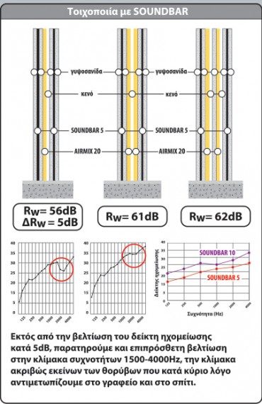 SOUNDBAR 10 kg/m2 Rw = 26 db (500Hz), SOUNDBAR 5 kg/m2 Rw = 20 db (500Hz)